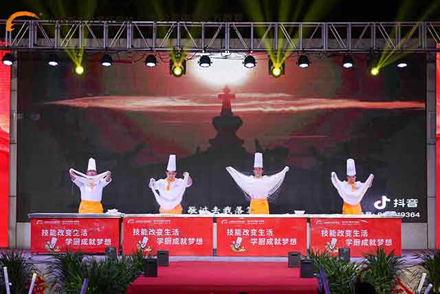 本次晚会紧扣“锦绣中华,盛世欢歌”主题,精心设置“匠艺承古,雅韵流芳”“青春逐梦,活力飞扬”“家国同心,盛世欢歌”三个篇章,将专业特色与艺术表演、思政教育与兴趣引导深度融合。来自中烹、西点西餐、中式面点、形象设计等专业的师生们,化身舞台上的“追梦人”,用多样化的艺术形式诠释职教魅力——中烹专业师生带来的面艺表演,指尖翻飞间,普通的面团化作栩栩如生的花鸟鱼虫,既是传统技艺的惊艳亮相,也是“匠心传承”的生动诠释;西点西餐专业的学子以创意摆盘为灵感,融入现代舞蹈元素,展现年轻一代对“时尚与专业”的独特理解;形象设计专业的走秀表演更是将晚会推向高潮,学生们将传统服饰纹样与现代审美结合,每一套造型都彰显着对“美”的探索,也传递着文化自信;此外,激情澎湃的歌曲演唱、活力四射的现代舞、惊险刺激的杂技表演轮番上演,一幕幕精彩瞬间如同璀璨星辰,照亮了学子们的逐梦之路,也让现场观众沉浸在艺术与情感的双重震撼中。