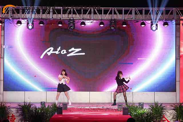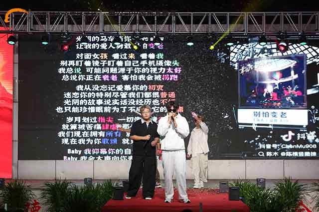 晚会现场灯火璀璨,流光溢彩的灯光将校园点缀得格外喜庆,台下师生手持荧光棒,随着音乐节拍轻轻挥舞,汇成一片流动的星河。热烈欢快的氛围提前点燃了双节的喜悦,掌声、欢呼声与期待的目光,共同为这场盛会拉开序幕。